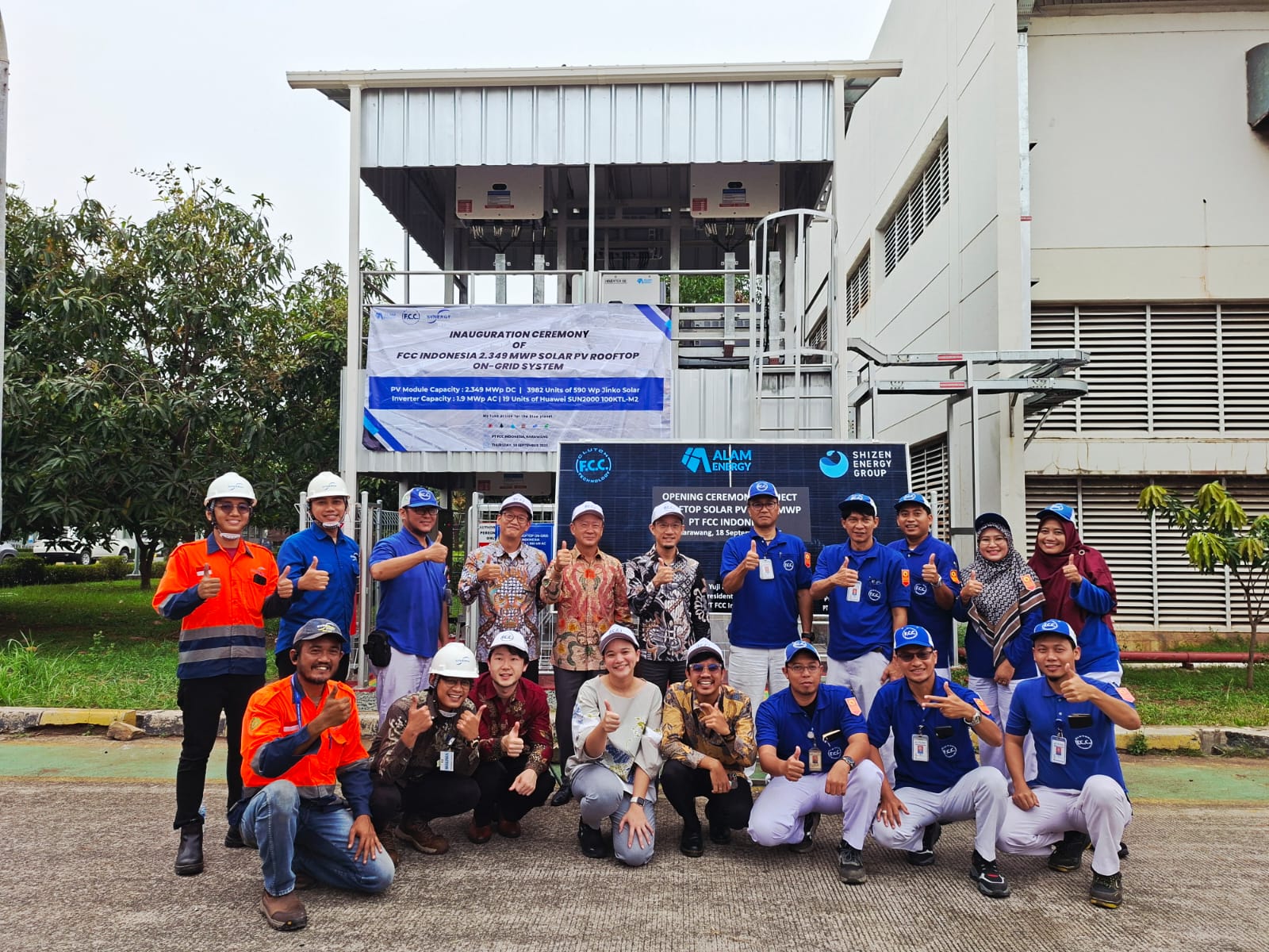 NiX JAPAN グループが資本参画し、インドネシアにおいて屋根置き太陽光事業を推進している合弁会社のPT. Alam Energy Renewables(以下、Alam Energy)を通じて、株式会社エフ・シー・シーのインドネシア法人であるPT. FCC Indonesia(以下、FCC Indonesia)向けの、最大出力2.3MWp(DC)の屋根置き太陽光発電設備を完工し、2025年9月18日に完工セレモニーを開催しました。