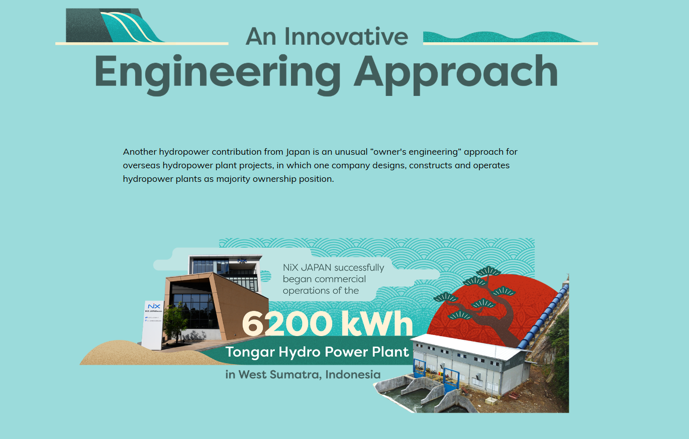 NiX JAPANグループがインドネシアで取り組んでいるトンガル水力発電事業が、金融・経済を中心に世界のマーケットやビジネス動向を迅速かつ正確に伝えるグローバルメディアのBloomberg社を通じ、日本政府(官邸・内閣府国際広報室)が実施する欧米向けデジタル記事広告において、海外で水力発電に取り組む日本企業の代表的事例の一つとして選定され、記事広告に紹介されました。